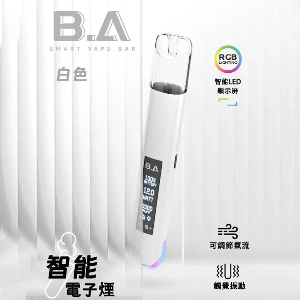 全新B.A一代主機 全新設計LED可調式顯示屏主機,為用戶提供了一款集時尚設計、智能溫控與高效續航於一體的高端Vape主機體驗。B.A一代主機採用高端漆面工藝,呈現獨特的光澤和質感,這款主機不僅時尚大氣,更是能彰顯使用者的高貴品味和獨特個性。