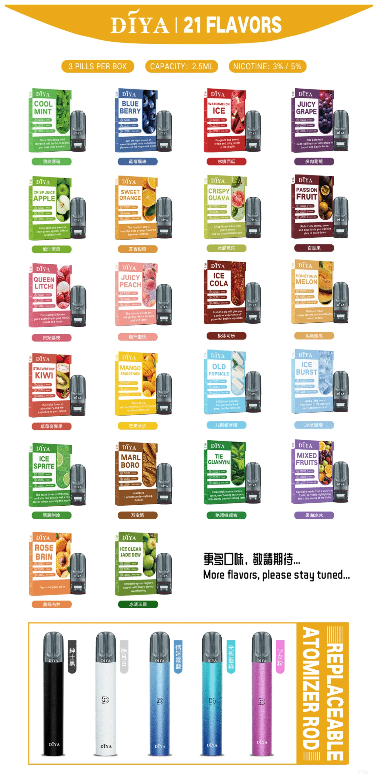 | 尼古丁濃度 | 約3%/5%,0焦油 |