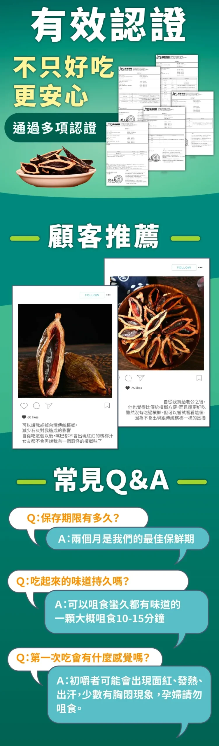 消費須知:開袋取出檳榔乾咀嚼,咀嚼後檳榔渣切勿吞嚥!