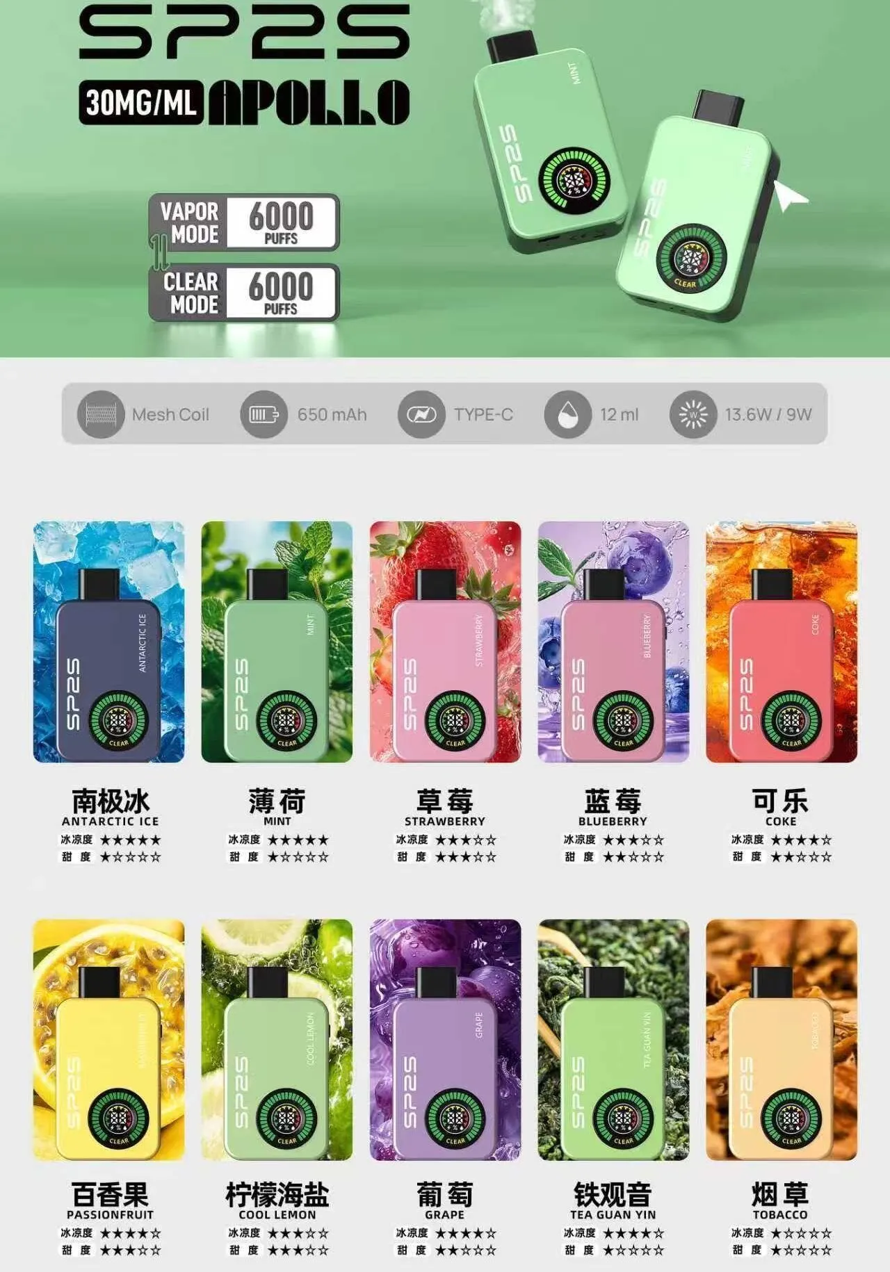 | 產品名稱 | Apollo 拋棄式電子煙 |
